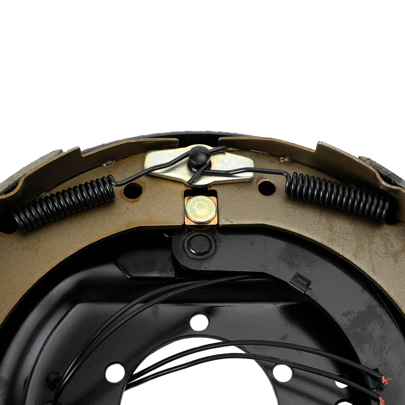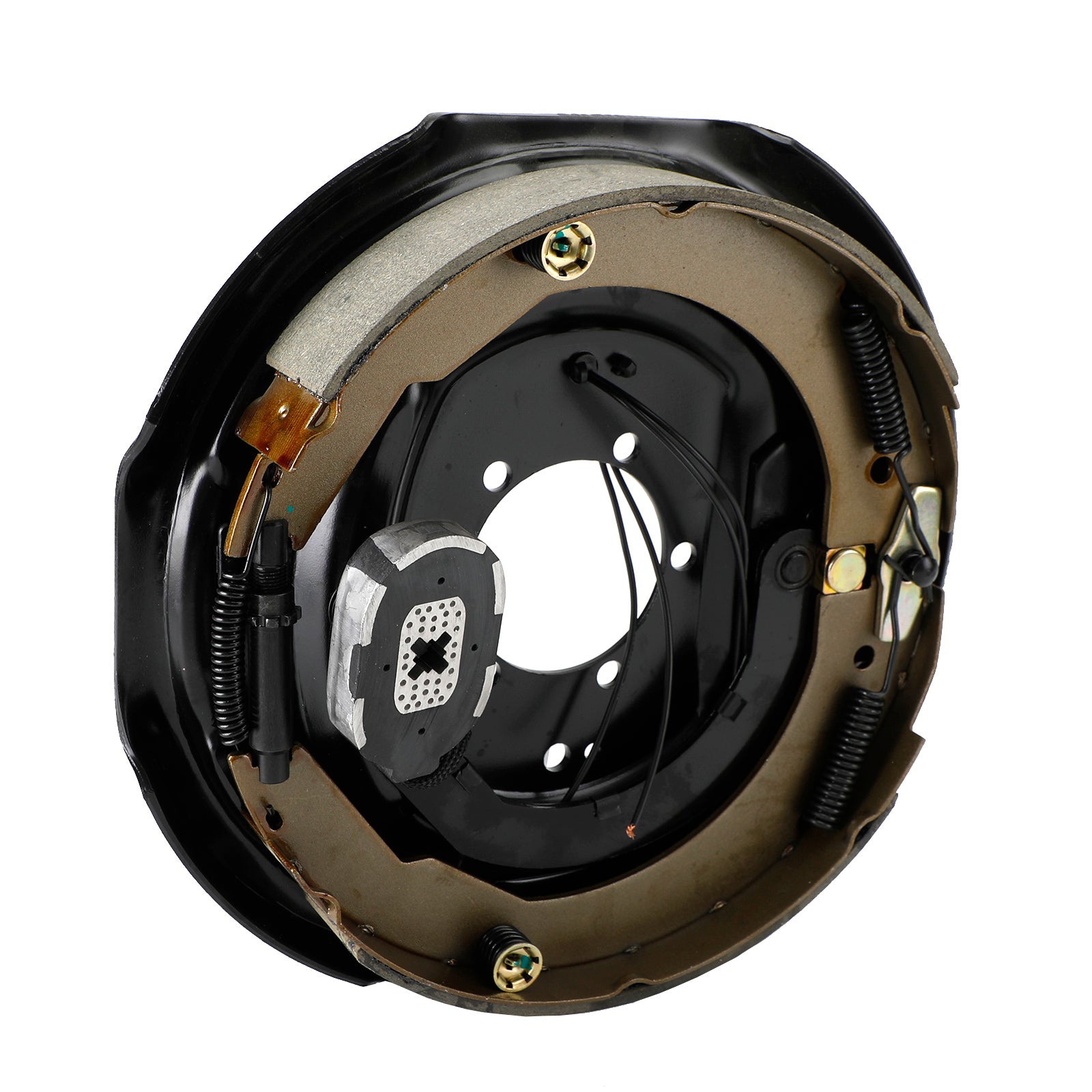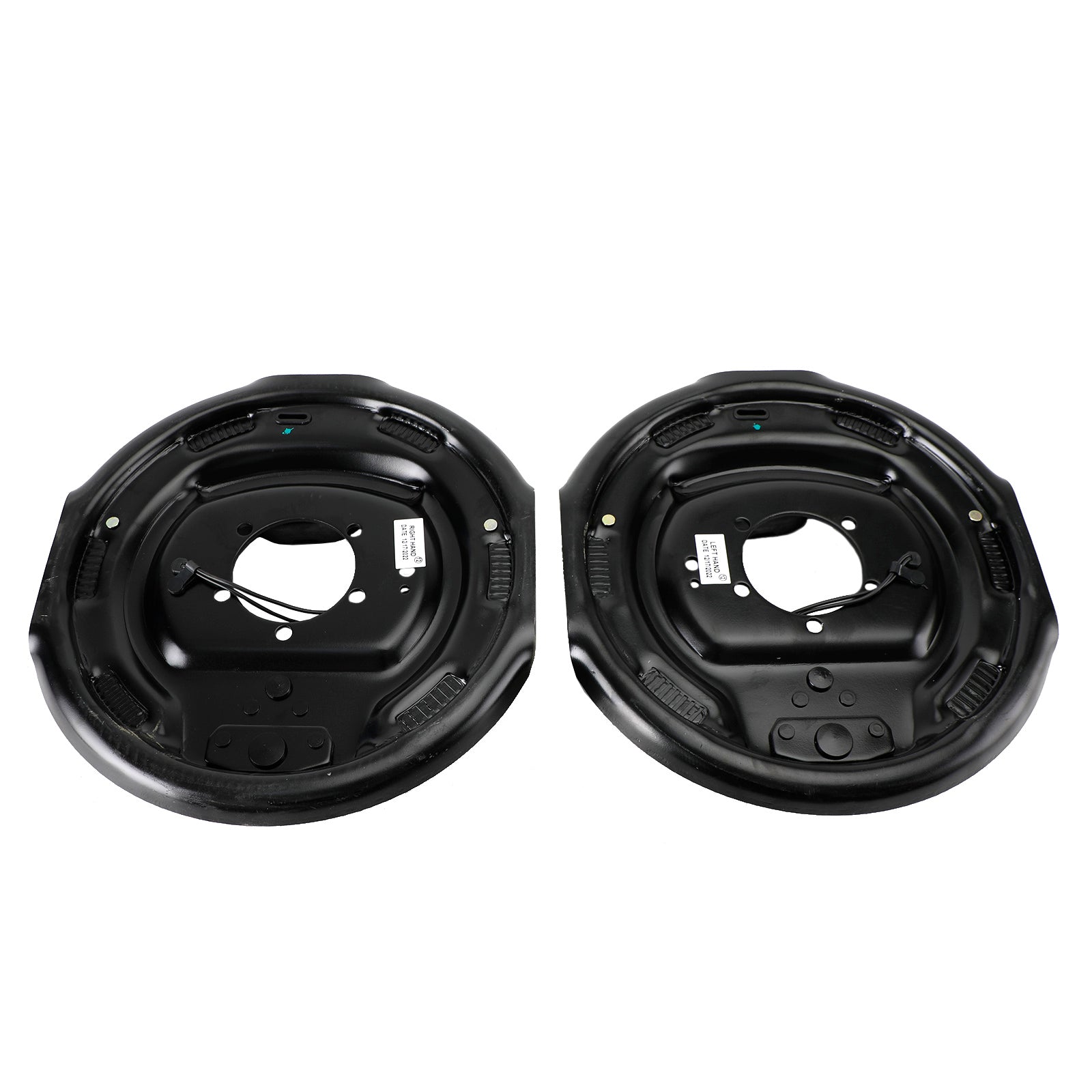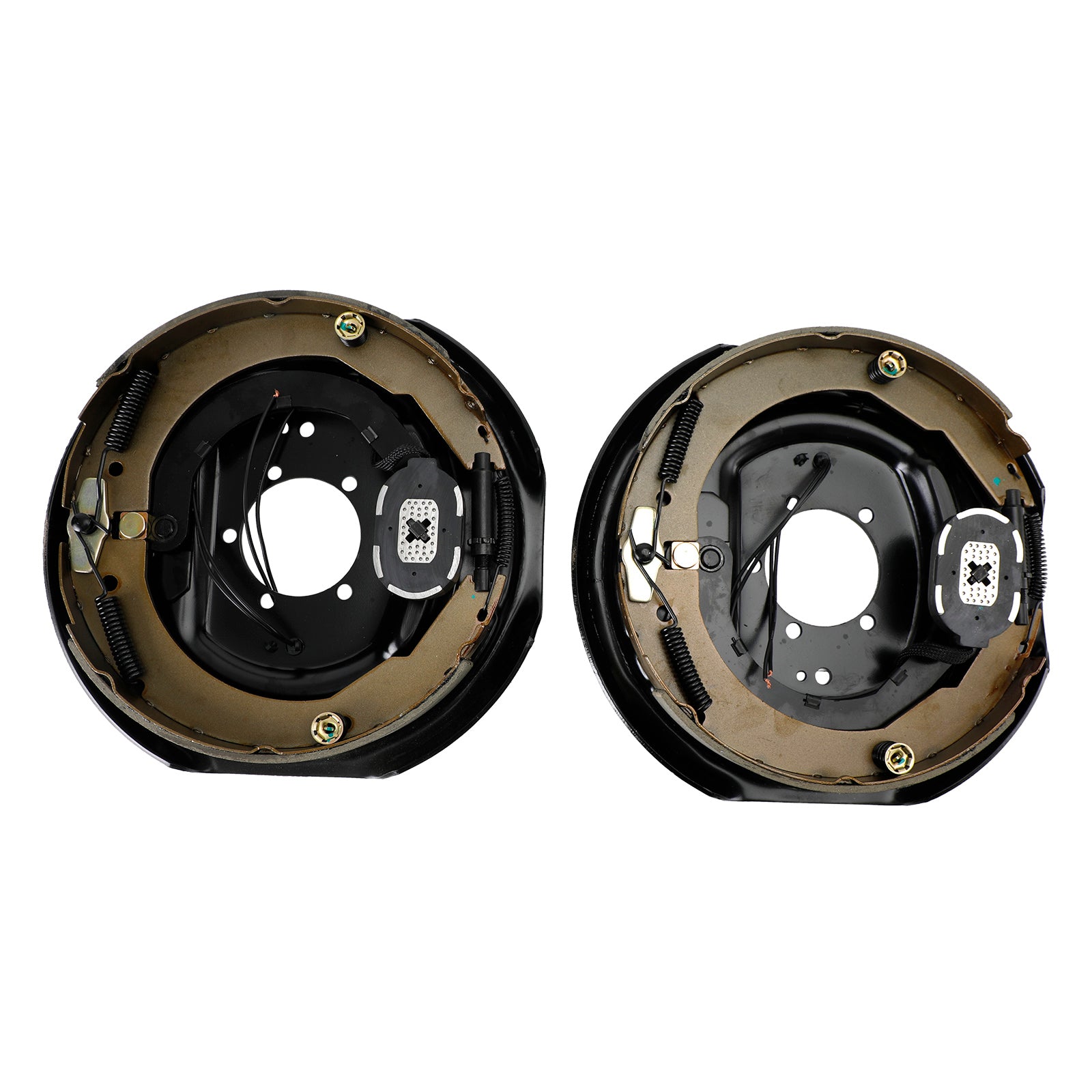 Driver's-side and passenger's-side electric brakes measure 12" x 2". Brake pads are made of durable friction material for improved braking and longevity. E-coated backing plates resist rust. Fit 14-1/2" to 16-1/2" wheels.